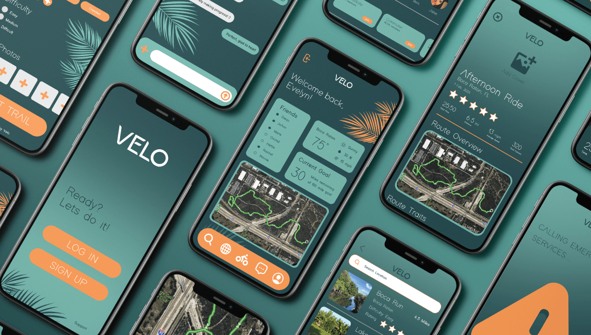A cycling app that provides cyclists an easy and widely accessible way of tracking their cycling progress. The clean and simplistic UI gives the app a tropical feel, which pays homage to the app’s place of origin in Florida. Additionally, while the landing page uses the same visual style, it intentionally attracts new users with its fun and attractive visuals.