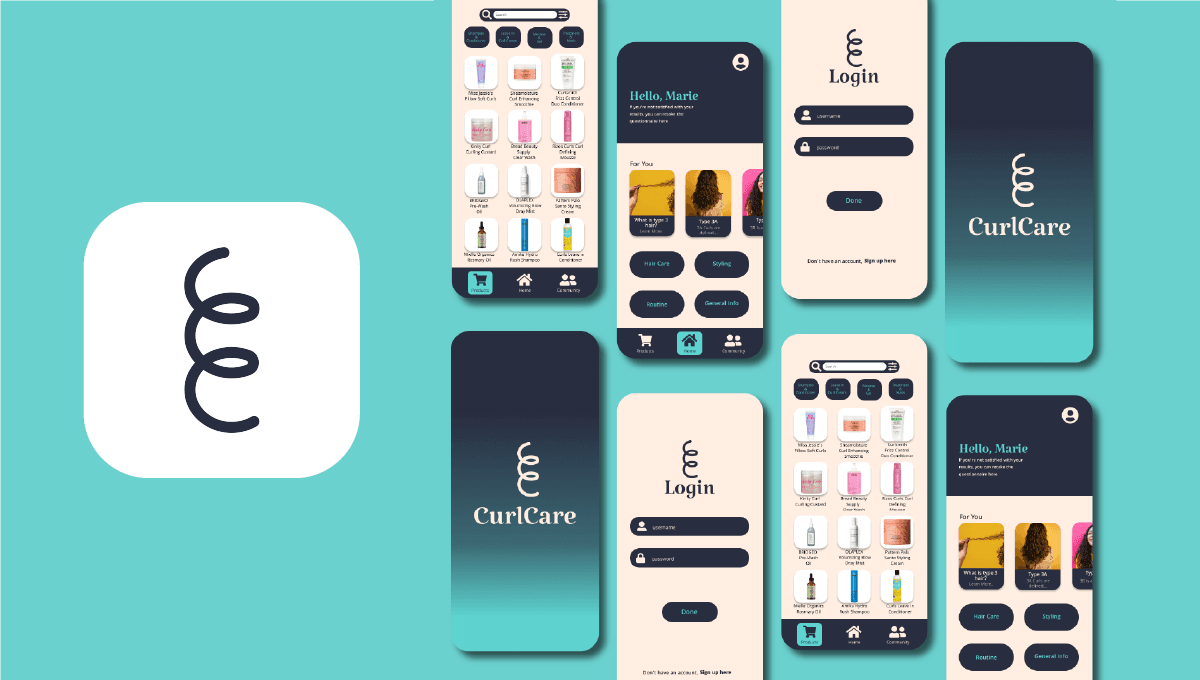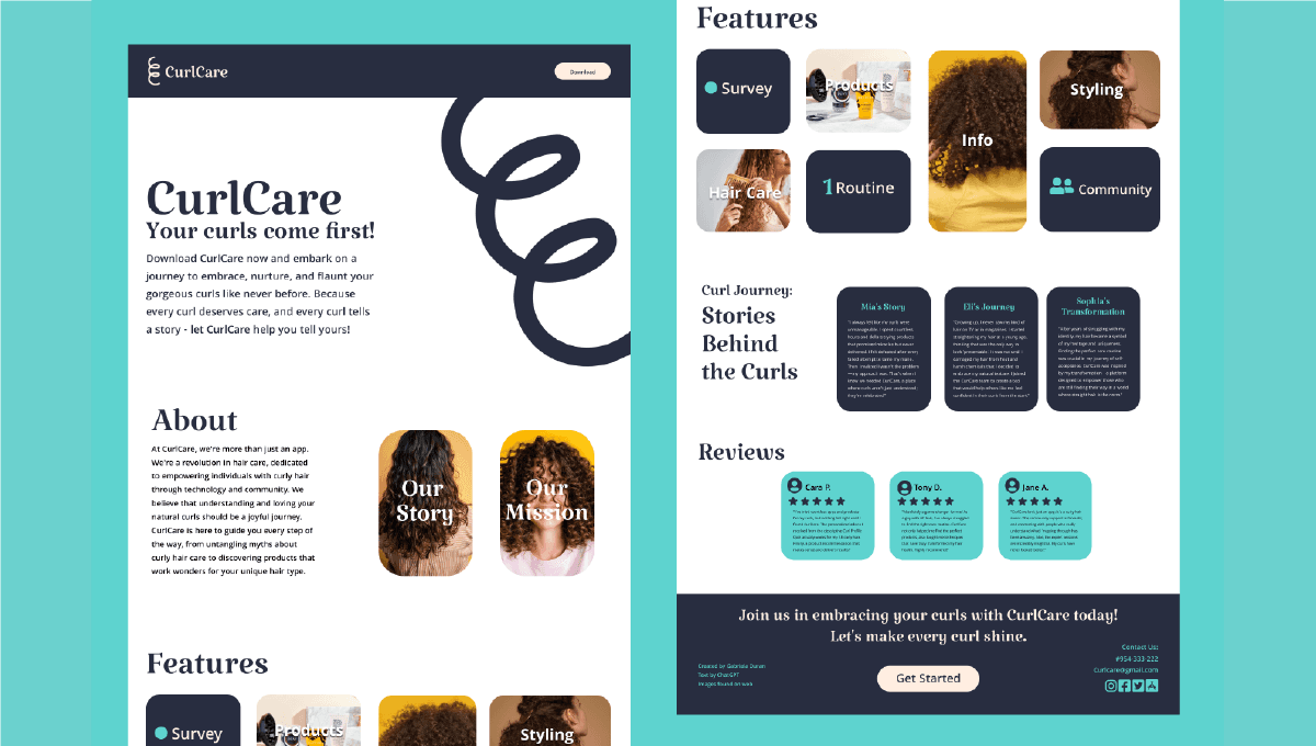 A mobile application with a supporting landing page to help users learn how to care for and style their curly hair. This app gathers multiple resources in one place. The design features a clean, simple look for ease of use and readability.