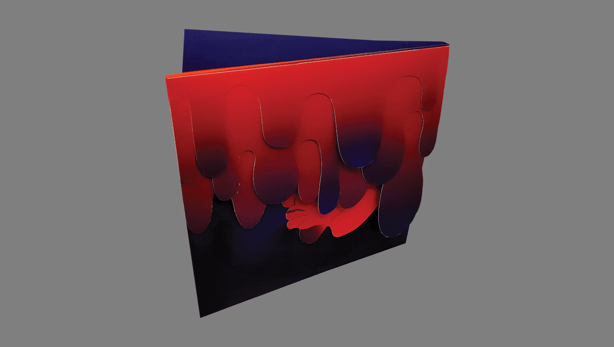 Form and graphics for the collectors’ edition LP ‘Melt my Eyez, See your Future’ by Denzel Curry. The packaging was created to reflect the title and the introspective, contemplative and meditative mood of the album. The color palette features bold oranges, indigo and a deep dark purple to help establish a mood. The visuals also feature warped text and various melancholic illustrations to reflect the atmosphere of the LP. Die-cut flaps allow users to interact with the form and discover an illustration of the artist.