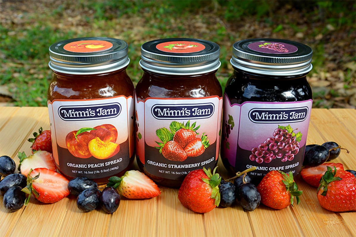 Mimi’s Jam is an artisanal jam brand that offers the warmth and simplicity of homemade preserves. The brand’s aesthetic is characterized by bold typography, playful fruit illustrations, and realistic imagery that highlights the vibrant colors and high-quality ingredients of each jam. The primary brand colors include peach, red, and purple with olive green and deep purple as accents. The colors are derived from the original fruit illustrations that refer to the original fruit flavors.